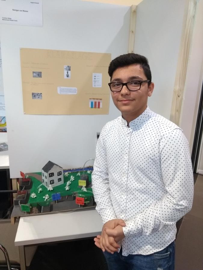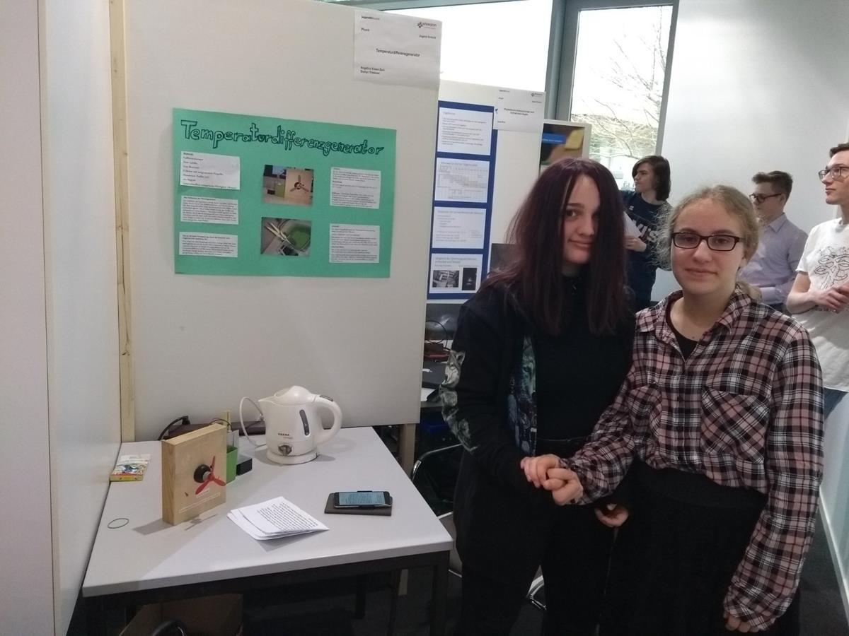 In Neuwied starteten außerdem Mohammad Ghaderi Sorki und Tunahan Akdag (beide ebenfalls Klasse 9a) sowie Evelyn Thiessen und Eileen Zeni (beide Kl.10b). Sie beschäftigten sich mit der Funktionsweise einer Kläranlage bzw. eines Temperaturdifferenzgenerators.