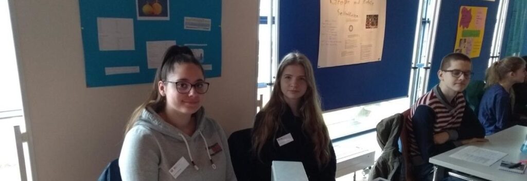 Beim Regionalwettbewerb in Remagen nahmen dann Liliana Vojnarovski (Kl.8b) und Diana Schander (Kl.8c) sowie Pavel Klishin (Kl.8a) teil. Ihre Themen: „Obst unter Strom“ und „Seifenblasen-groß und stabil“.