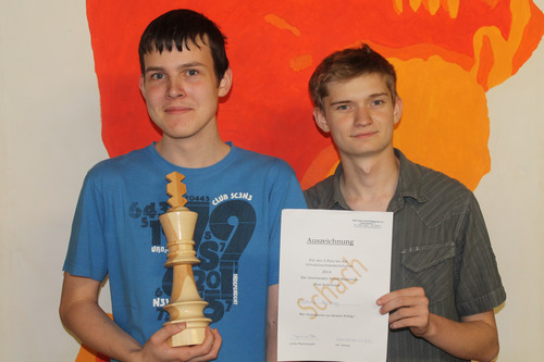 Seit Februar 2014 wurden die Schulschachmeisterschaften durchgeführt. Aus insgesamt 32 Teilnehmern wurden die zwei Finalisten ermittelt. In einem spannendem Endspiel bezwang Tobias Unger (links) aus der 10d Dominik Morlang (rechts) aus der 9a.