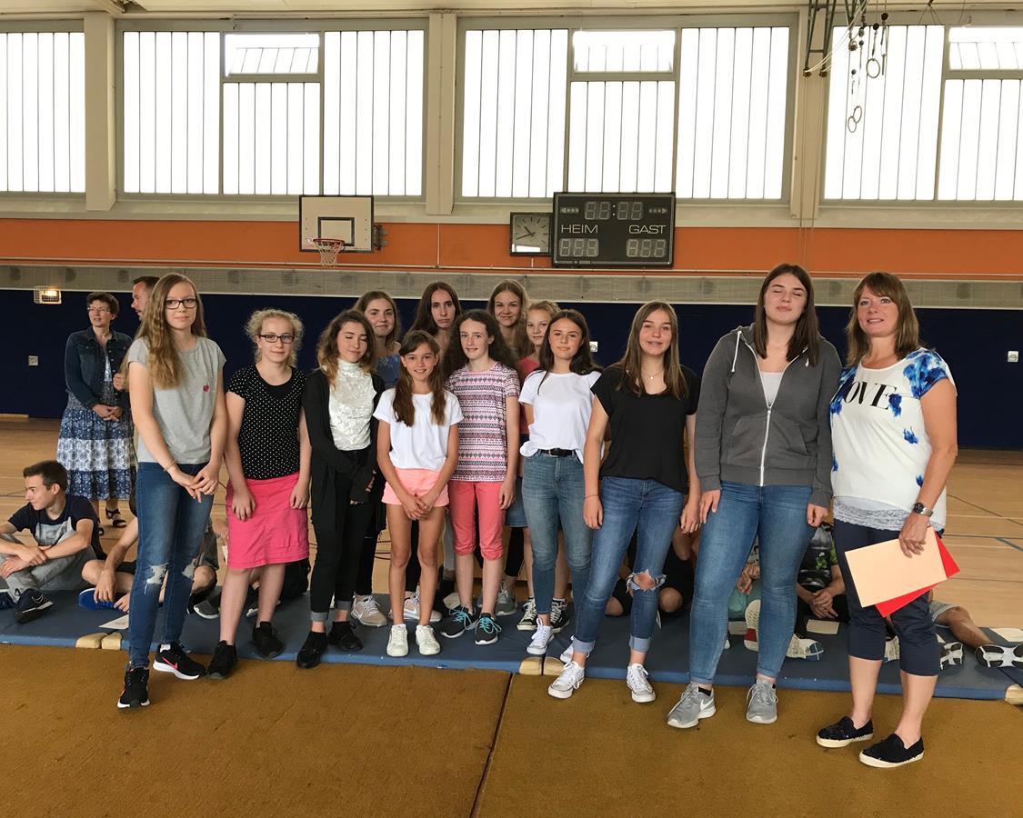 Das Mädchenteam der Wettkampfklasse III unter der Leitung von Monika Reif konnte sich in diesem Jahr sowohl in der Vorrunde als auch im Regionalentscheid durchsetzen und für das Landesfinale qualifizieren. Auch dort zeigten die Mädels tolle Leistungen, einige konnten sogar abermals Bestwerte in ihren Disziplinen erzielen. Gleichzeitig war man allerdings ein wenig geschwächt, da einige Mädchen aufgrund einer Klassenfahrt nicht teilnehmen konnten. Aber das Team zeigte Kampfgeist und wurde am Ende fünftbeste Mannschaft von ganz Rheinland-Pfalz. Ein tolles Ergebnis !