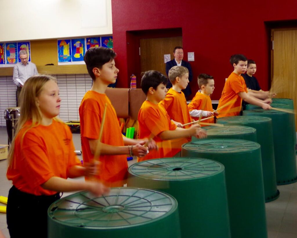 Die Begrüßung übernahmen neben der Schulleiterin Linda Pfannschmidt die Street-Drummer, die Bläserklassen der Schule sowie die Klasse 6a. Anschließend erkundeten die Schülerinnen und Schüler umliegender Grundschulen in Begleitung von Schülerscouts des achten Schuljahres Stationen wie beispielsweise die Physikshow, englischsprachiges Theater, die Kunstwerkstatt, einen Sportparcours, Holzarbeiten, eine mathematische Schatzsuche und vieles mehr. Neben diesen Beispielen aus dem Unterricht zeigte die Geschwister-Scholl-Realschule plus auch ihre besonderen pädagogischen Schwerpunkte. Dazu gehören u.a. der Bili-Zweig sowie weitere Angebote in Englisch und Französisch für sprachinteressierte und –begabte Schülerinnen und Schüler, die Schulbibliothek, der Schulsanitätsdienst, das Trainingsraumkonzept und die Schulband. Mit Unterstützung des Bläserstudios Jacobs Koblenz stellten sich außerdem die in Kooperation mit dem Stadtorchester Andernach eingerichteten Bläserklassen vor.