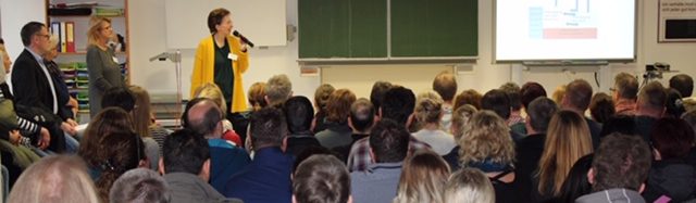 Ihre Türen öffnete am letzten Samstag im Januar die Geschwister-Scholl-Realschule plus Andernach für zahlreiche große und kleine Besucher, damit diese die Schule und ihre pädagogische Arbeit kennenlernen konnten. Die Begrüßung übernahmen neben der Schulleiterin Linda Pfannschmidt die Street-Drummer und die Bläserklassen der Schule. Anschließend erkundeten die Schülerinnen und Schüler umliegender Grundschulen in Begleitung von Schülerpaten des zehnten Schuljahres Unterricht an der Geschwister-Scholl-Realschule plus in Andernach wie beispielsweise die Kunstwerkstatt, einen Sportparcours, Mikroskopieren im Naturwissenschaftlichen Unterricht und vieles mehr. Neben diesen Beispielen aus dem Unterricht zeigte die Geschwister-Scholl-Realschule plus auch ihre besonderen pädagogischen Schwerpunkte. Dazu gehören u.a. der Bili-Zweig sowie weitere Angebote in Englisch und Französisch für sprachinteressierte und –begabte Schülerinnen und Schüler, der Schulsanitätsdienst und das breit aufgestellte Berufsorientierungsangebot. Die Schülerinnen und Schüler des Französischkurses der Klassenstufe 6 zeigten ihre in einem halben Schuljahr bereits erworbenen Fertigkeiten in dem Theaterstück „Bonne anniversaire“. Am Ende der Aufführung gab es als Überraschung für die kleinen Zuschauer ein Stück Schokoladenkuchen. Im Verlauf des Tages stellten die in Kooperation mit dem Stadtorchester Andernach eingerichteten Bläserklassen ihren Unterricht vor. Das Fach „Technik und Naturwissenschaften“ lud in seine Räume ein. Hier konnten die kleinen Gäste gemeinsam mit den Schülerinnen und Schülern der Klassenstufe 6 Würfel- und Laubsägearbeiten fertigen. In der Küche bereitete der Wahlpflichtfachbereich „Hauswirtschaft und Sozialwesen“ einen leckeren Obstsalat sowie Gemüsesticks zu. Diese wurde dann gemeinsam mit Freude und Appetit verspeist. Während die Viertklässler im Haus unterwegs waren, erhielten deren Eltern durch die Schulleitung ausführliche Informationen zur Geschwister-Scholl-Realschule plus. Auch die Arbeit des Fördervereins der Schule wurde vorgestellt. Ein Grußwort des Elternbeirats sprach Ute Fittkau. Erstmals wurde von Schülerinnen des Wahlpflichtfachbereichs „Wirtschaft und Verwaltung“ der Klassenstufe 8 eine Kinderbetreuung für die ganz kleinen Besucher angeboten. Dieses Angebot wurde von den Eltern gerne angenommen. Auch die Eltern selber gingen auf Erkundungstour durch die Schule. Ebenso nutzten viele die Möglichkeit sich in der von der Schülervertretung und dem Wahlpflichtfach „Wirtschaft und Verwaltung“ der Klassenstufe 8 einladend gestalteten Cafeteria zu stärken. Am Ende des Tages der offenen Tür verabschiedeten sich die jungen Besucher von ihren Schulpaten – voller Eindrücke und überrascht, wie schnell ein Schulvormittag vorbeigehen kann. Eine wirklich gelungene Veranstaltung! Die Anmeldung an der Geschwister-Scholl-Realschule plus Andernach ist möglich in der Zeit vom 15.02. bis 22.02.2019 jeweils zwischen 8:30 Uhr und 12:30 Uhr sowie zusätzlich am 21.02.2019 von 14:00 Uhr bis 18:00 Uhr.