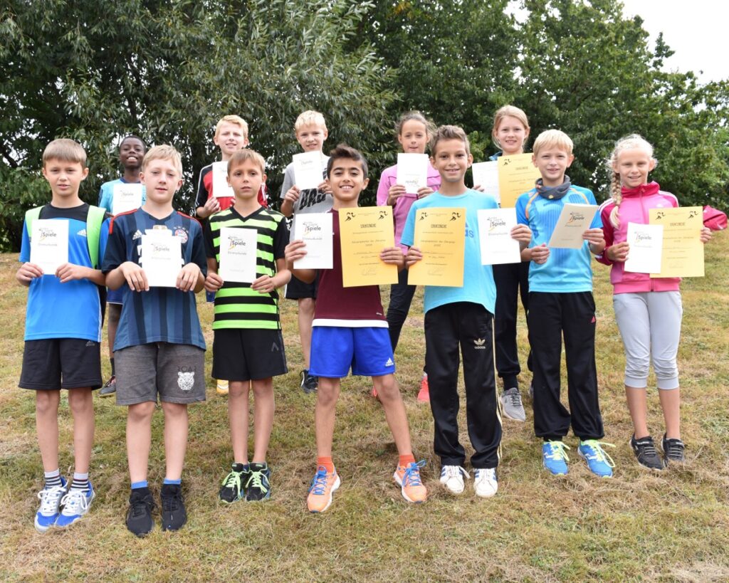 Die Schülerinnen und Schüler der Klassenstufe 5 waren mit Feuereifer dabei – zeigten Einsatzwillen und tolle Leistungen. Bei der abschließenden Siegerehrung durch die Orientierungsstufenleiterin, Frau Heike Staffa, erhielten alle Kinder eine Urkunde. Frau Staffa konnte 30 Teilnahmeurkunden, 24 Siegerurkunden und sogar 11 Ehrenurkunden überreichen.